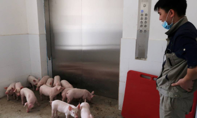 O prédio foi construído para atender à demanda da China por carne suína, que é a fonte de proteína mais popular do país.